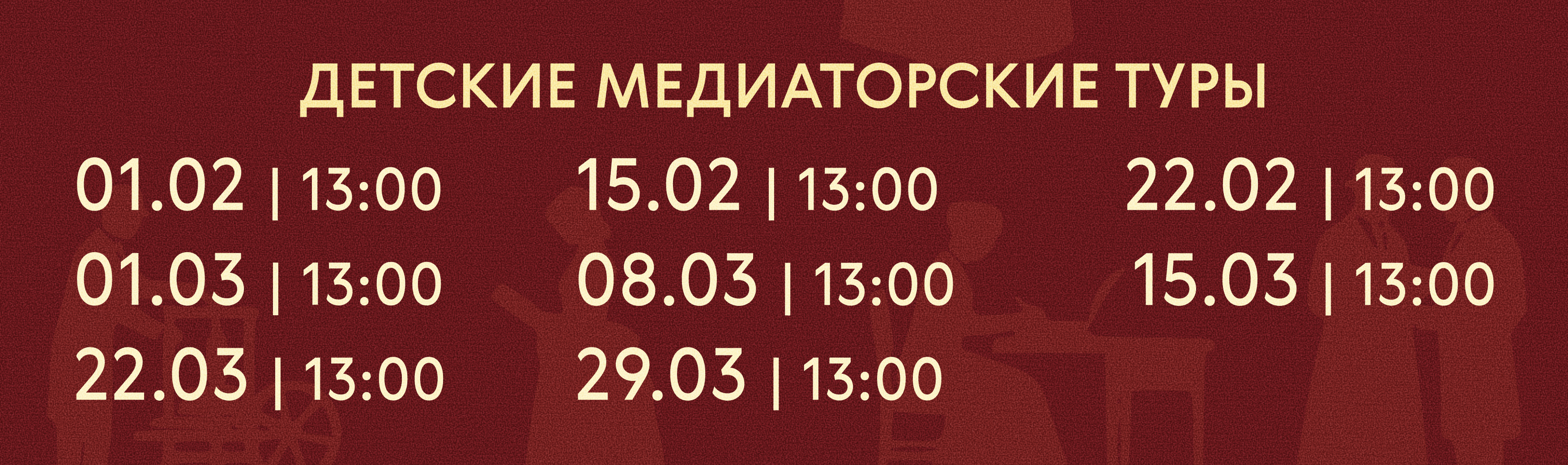 Медиатор — не простой экскурсовод. Он предлагает темы для обсуждения, задает вопросы и предлагает делиться впечатлениями и мыслями. По окончании тура медиатор предложит участнику самостоятельно пройти небольшой квест по экспозиции, основываясь на полученных знаниях.