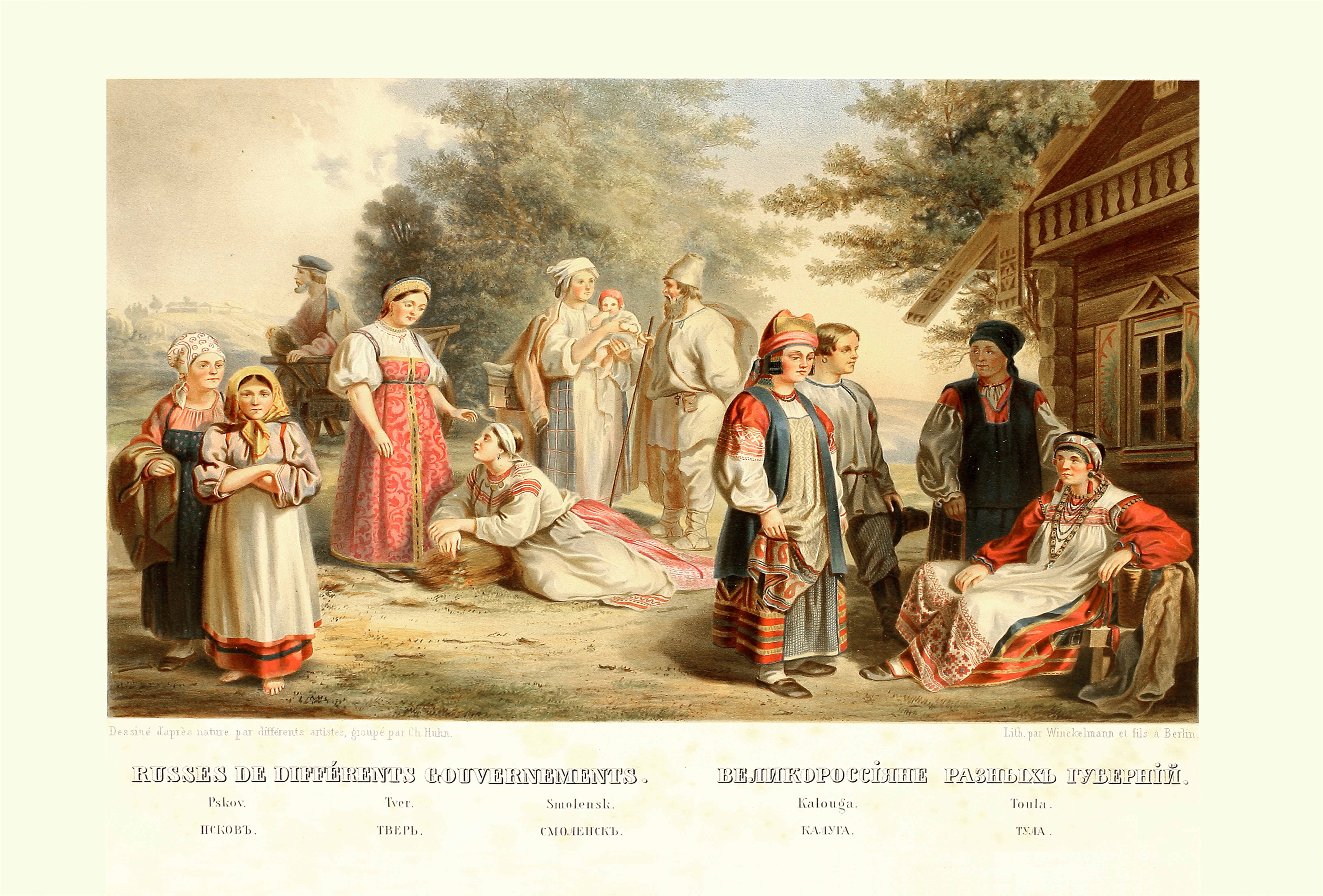 Рисунки для книги, сделанные с натуры, изданы цветными в технике хромолитографии. Они с большой полнотой и точностью запечатлели костюмы и быт жителей России середины XIX века. Под каждой иллюстрацией содержатся сведения о художниках и граверах. Среди имен русских и иностранных художников, делавших рисунки, встречаются как известные, так и почти забытые впоследствии: К. Гун, С. Павлов, А. Петцольд, Карпов, Виаль, Джиржановский и др.