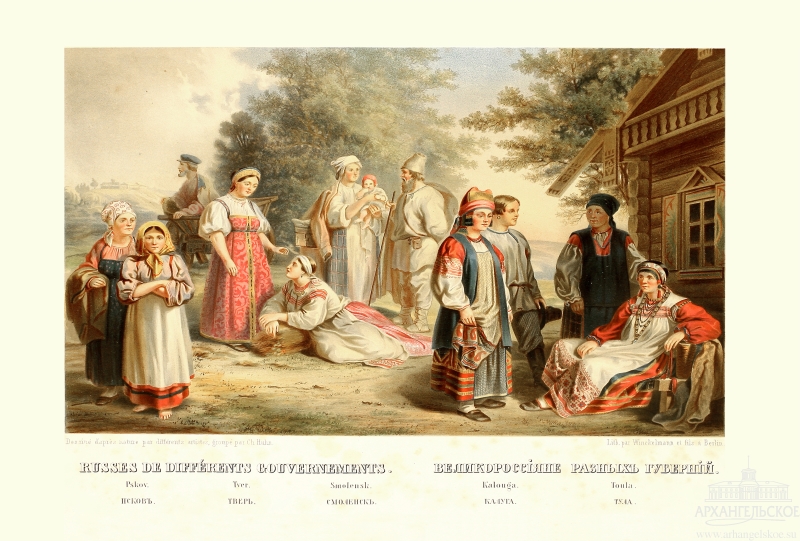 Издания подобного рода служили идее укрепления русской государственности: при Екатерине II появилось первое этнографическое исследование И.-Г. Георги, в 1812 году был выпущен альбом «Народы России» с гравюрами Емельяна Корнеева. Выпуск серий фарфоровых фигур «Народы России» Императорского фарфорового завода, заказанных Екатериной II и Николаем II, Всероссийская Этнографическая выставка 1867 года, – так государство считало необходимым напоминать своим гражданам о том, что Россия – многонациональная страна.